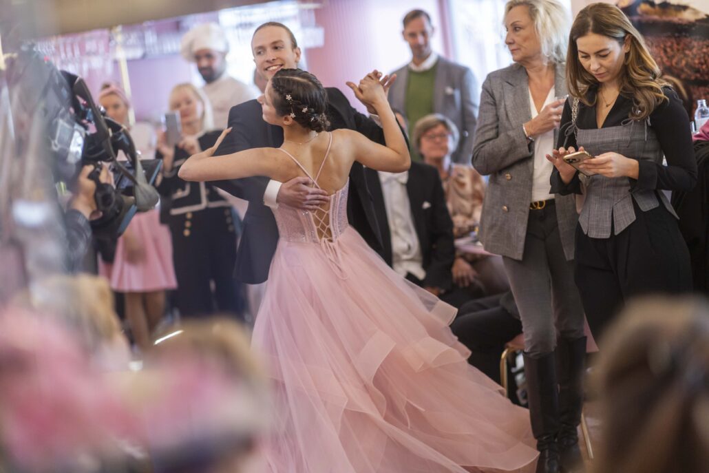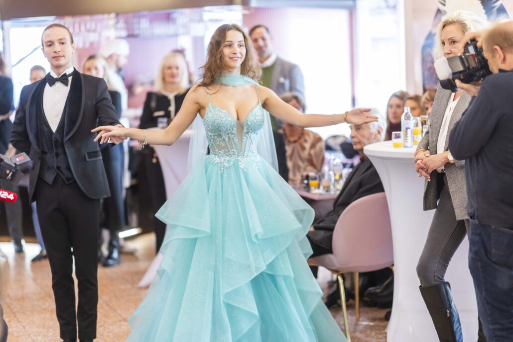 Die Präsentation geriet rasch zur kleinen Modenschau: Vor Persönlichkeiten wie Thomas Schäfer-Elmayer, Richard Fränzl, Karin Lemberger, Marika Lichter, Birgit Sarata, Tanja Duhovich und Miss Earth Austria Lotte Diry wurden Aïdas Auslagen zur Bühne für die schönsten Abendroben und festliche Trachtenmode. Der Stephansplatz wurde zum Laufsteg – elegant, lebendig und ganz im Zeichen der Wiener Ballkultur.
