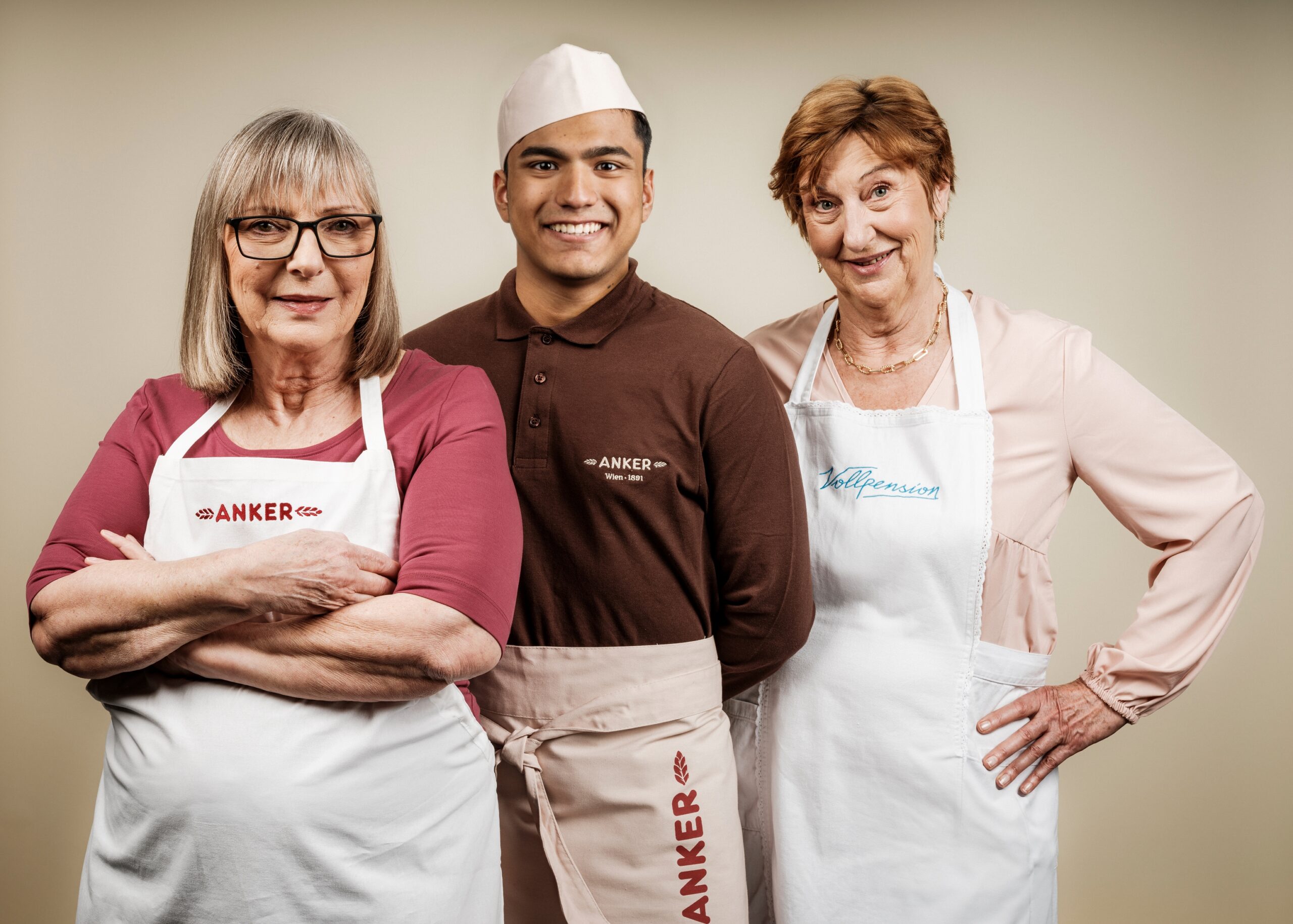 Agnes und Maria sind die Gesichter der Kampagne. Maria bringt seit zehn Jahren ihren Erfahrungsschatz in der Vollpension ein und steht nun auch ANKER als Mentorin zur Seite. Agnes, 65, startet jeden Tag um 5.30 Uhr, um frische Weckerl vorzubereiten – freiwillig, aus Freude und mit dem E-Scooter. Ihre Arbeit gibt ihrem Tag Struktur, Sinn und Begegnung: „Ich muss nicht arbeiten, aber ich will.“ Besonders nach der Corona-Zeit habe sie erkannt, wie wichtig soziale Kontakte sind. Dass ein Team über Generationen hinweg profitieren kann, bestätigt auch Alexandra Ballaun, HR-Leiterin bei ANKER: „Unsere Lehrlinge lernen enorm viel von unseren älteren Mitarbeitenden. Es entsteht ein einzigartiger Teamgeist.“