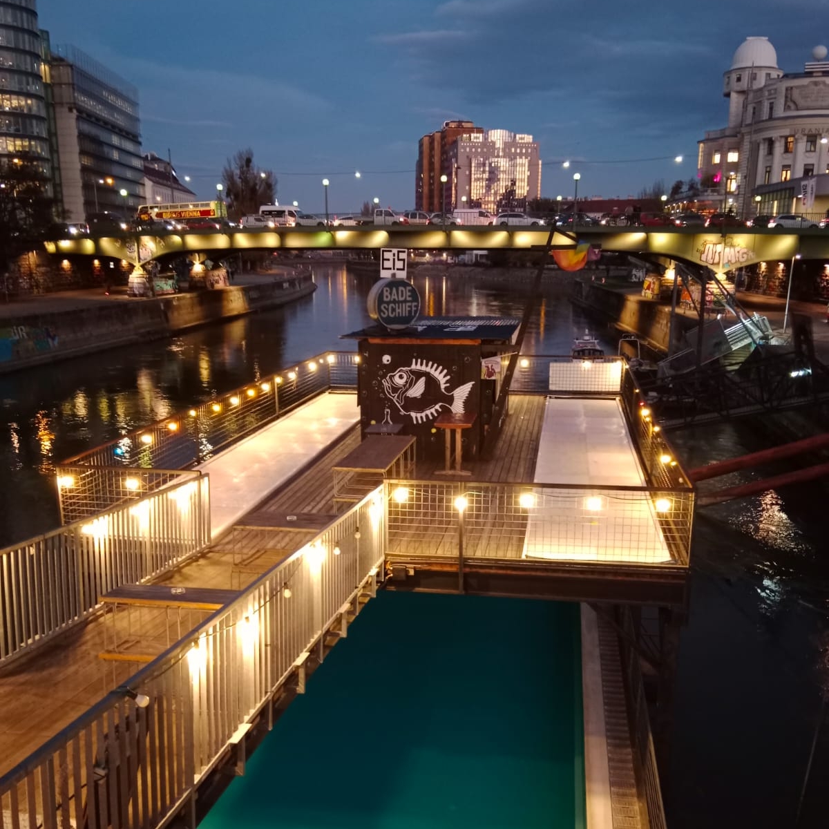 Das Badeschiff in Wien hat über den Winter für seine Gäste Bahnen zum Eisstockschießen aufgebaut. Dort können die Eisstöcke bei warmem Punsch und herzhaften Snacks übers Eis geschmissen werden! Für besonders hartgesottene gibt es außerdem die Möglichkeit, Eisschwimmen zu gehen.