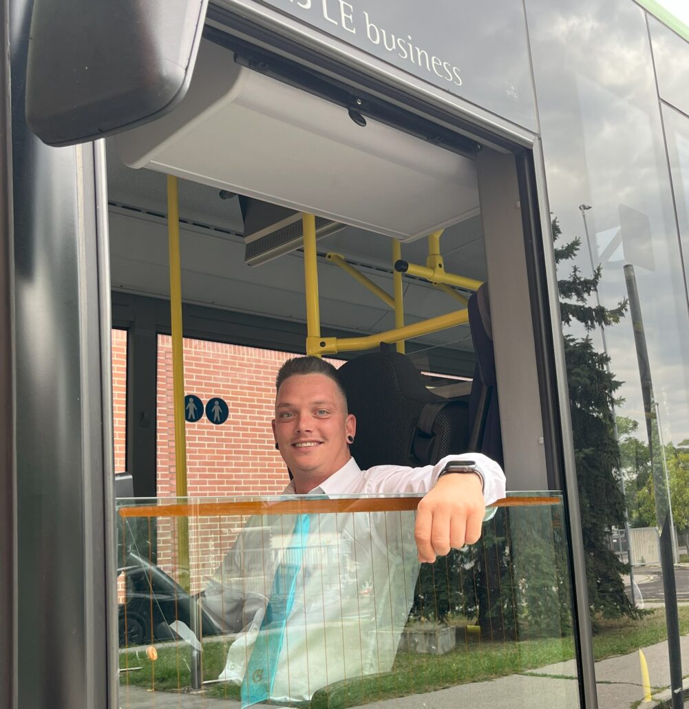 Christoph grüßt nahezu alle Fahrgäste herzlich und nimmt sich bewusst Zeit für jede einzelne Person. Den Kontakt zu seinen Fahrgästen so positiv wie möglich zu gestalten, ist ihm ein besonderes Anliegen. Das positive Feedback hilft ihm dabei, den oft herausfordernden Arbeitsalltag erfolgreich zu meistern.