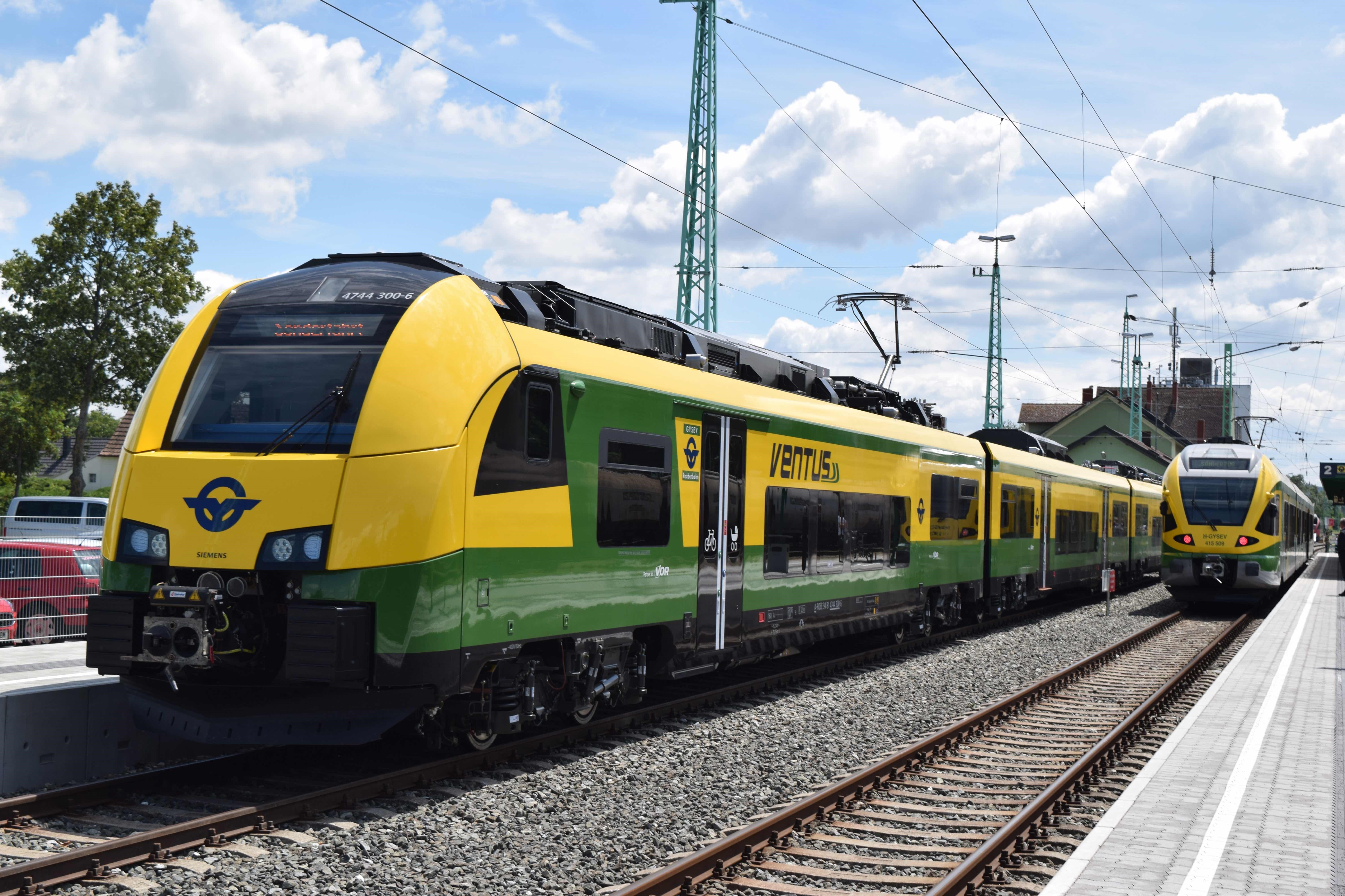 Die „grün-gelben Ventus“-Züge der Raaberbahn prägen das Bild auf der Strecke Deutschkreutz – Wien Hauptbahnhof – Bratislava Petrzalka. Sie haben, dank des Energierückgewinngungssystems beim Bremsen, im Vergleich zu anderen vergleichbaren Modellen einen um 20Prozent niedrigeren Energieverbrauch, bei gleichzeitig geringerem Gesamtgewicht.