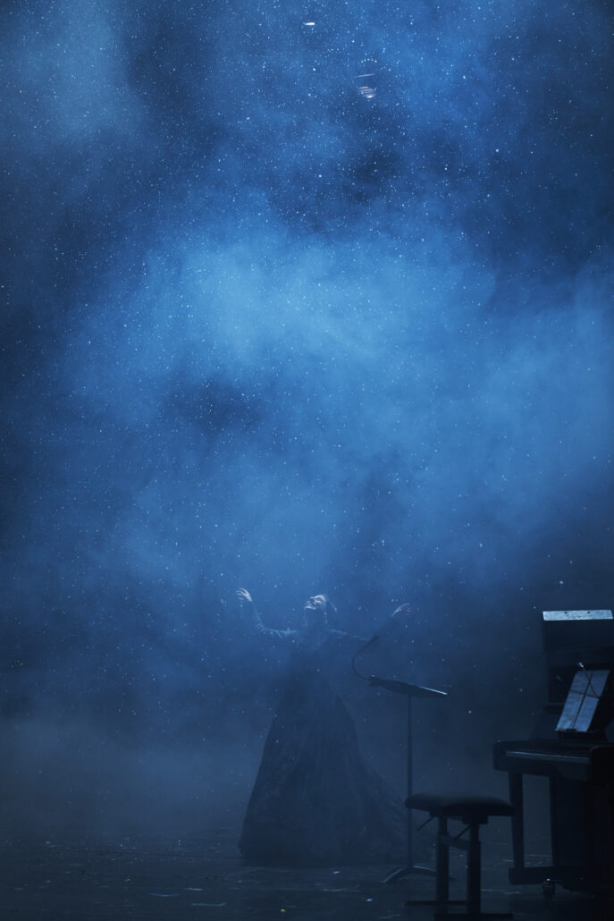 Um das alles einmal stolz zu präsentieren, wurde jetzt die Jubiläumsproduktion „Technikshow: Jetzt spricht die Bühne!“ entwickelt (Regie: Theresa Jarczyk, Text und Konzept: Jeroen Versteele), in der das Publikum die technischen Finessen des Theaters erleben kann. Schneefall und Donnerwetter inklusive. Der Abend dauert etwa eine Stunde (die nächsten Termine stehen noch nicht fest). Nach einer Begrüßung durch Burg-Direktor Stefan Bachmann und Schauspielerin Caroline Peters gehört die Bühne Zeynep Buyraç, die dieser die Stimme gibt. Um auch das sonst Unsichtbare sichtbar zu machen, gibt Karl Heindl, Leiter des Publikumsdienstes und seit 40 Jahren am Haus, in einer Videoeinspielung Einblicke in das Leben unter und über der Bühne. Aber echte Show muss natürlich auch sein: Rebecca Lindauer singt aus Gullivers Reisen, Markus Meyer aus Zu ebener Erde und erster Stock.