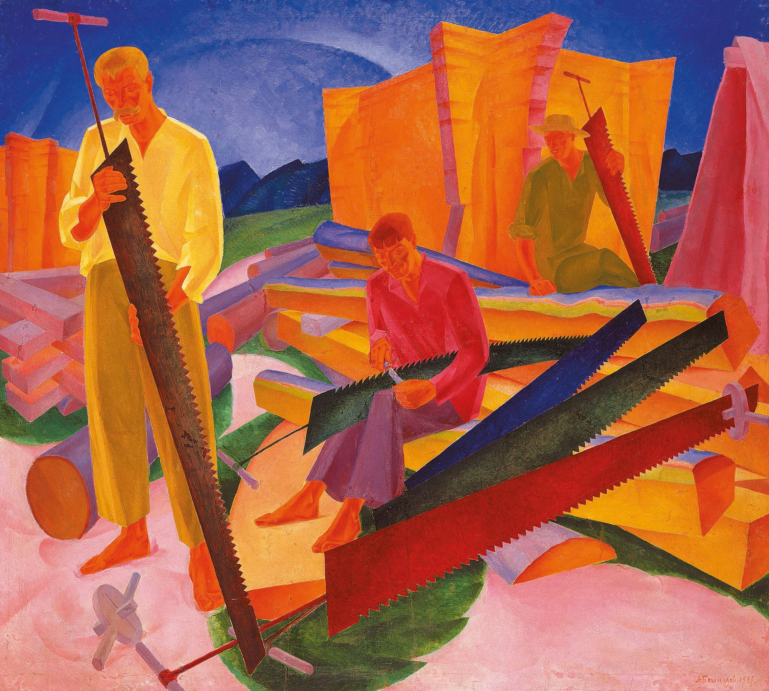 Die modernistische Bewegung entwickelte sich in der Ukraine vor einem komplizierten soziopolitischen Hintergrund: der Revolution von 1905, dem Ersten Weltkrieg, dem Zusammenbruch des Russischen Kaiserreichs 1917, der anschließenden kurzlebigen Unabhängigkeit als Ukrainische Volksrepublik (1917–21) und der Gründung der Sowjetukraine. Trotz der Wirren blühten ukrainische Kunst, Literatur, Theater und Film auf. Die Bojtschukist*innen (бойчукісти), Anhänger*innen des Malers monumentaler Formate Mychajlo Bojtschuk (Михайло Бойчук), schufen ihre eigene nationale Schule der Wandmalerei, die von der byzantinischen Tradition und der ukrainischen Volkskunst gleichermaßen inspiriert war. In Charkiw wurde Wassyl Jermilow (Василь Єрмілов) zum Hauptvertreter der ukrainischen Version des Konstruktivismus. In Kyjiw entwickelte Oleksandr Bohomasow (Олександр Богомазов), der bedeutendste Futurist des Landes, den als Spektralismus bekannten Stil. In den späten 1920er-Jahren wurde das Kyjiwer Kunstinstitut zu einem letzten Zufluchtsort für Pionier*innen der modernen Kunst wie Kasymyr Malewytsch (Казимир Малевич). All diese Entwicklungen wurden durch die stalinistischen Repressionen der 1930er-Jahre brutal unterbrochen.