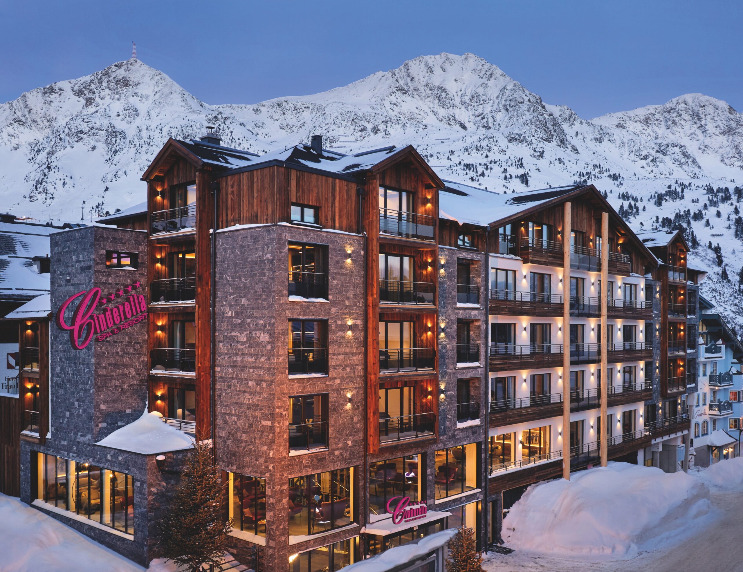 Cinderella – nicht nur der Name ist märchenhaft. Das Sporthotel Cinderella Spa & Resort ***** in Obertauern begeistert Gäste mit Top-Lage und atemberaubendem Panorama. Bereits in der Lobby spürt man das besondere Ambiente des Hauses – modernes Design, ausgefallene Highlights und wunderschöne Holzarbeit in ansprechender Harmonie. Wer sich nach dem Sport erholen möchte, kommt im riesigen Wellness-bereich auf seine Kosten. Vier Saunen, sechs Ruheräume, Solebäder und Tepidarium, der brandneue „Adults only“-Bereich, das Innenbecken mit Wirbelkanal und Massagenischen sowie direktem Übergang ins Außenbecken lassen den Alltagsstress vergessen. Die Beauty-Behandlungen und Massagen sind so individuell wie die Gäste, jede Anwendung wird speziell abgestimmt. Neueste Methoden und Produkte werden im zertifizierten Guinot-Institut angeboten.