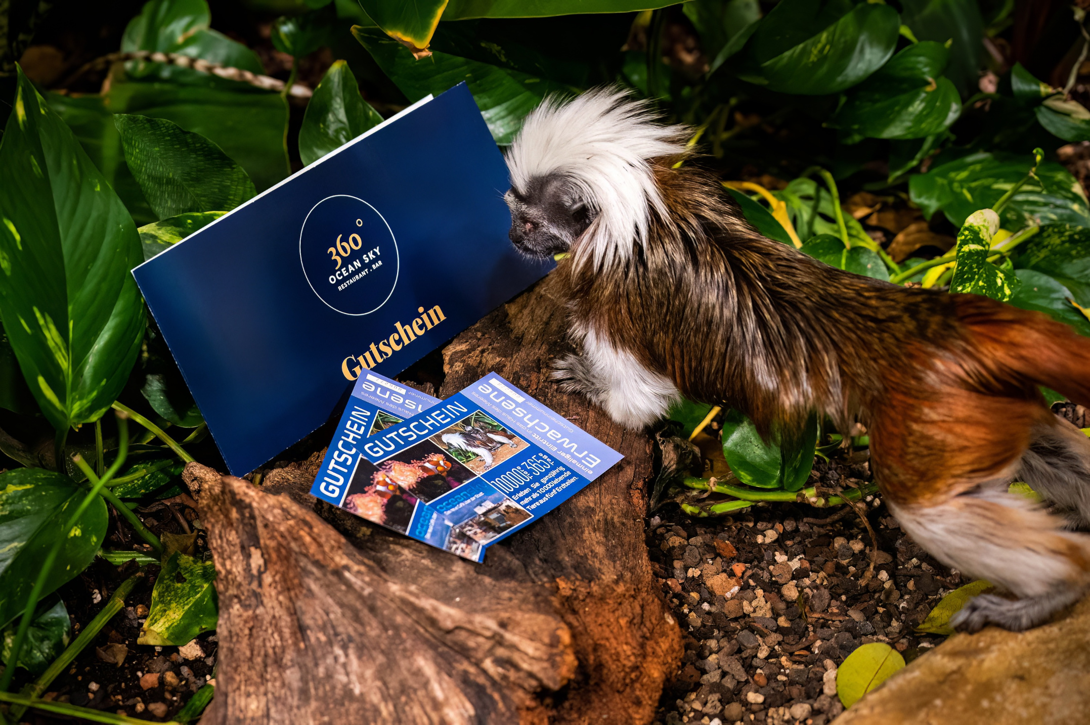 Verschenken Sie Abenteuer und Genuss mit Gutscheinen für den Zooeintritt oder Wertgutscheinen des 360° OCEAN SKY Restaurants auf dem Haus des Meeres – am besten in Kombination! Erhältlich sind die Gutscheine im Webshop.