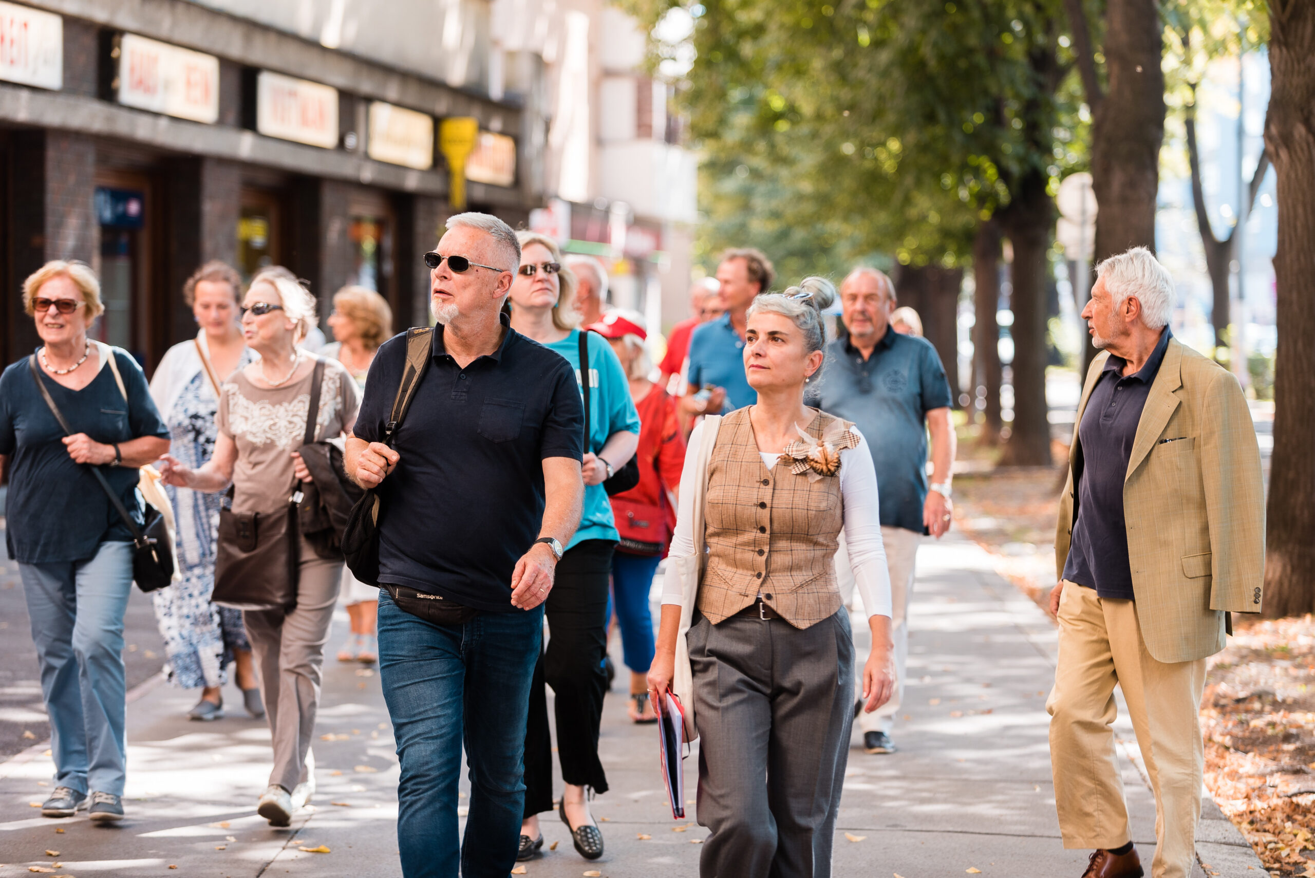 Das Team des Museums „Das Rote Wien im Waschsalon Karl-Marx-Hof“ bietet das ganze Jahr über interessante Stadtspaziergänge an, bei denen Teilnehmer*innen in die Geschichte der Donaumetropole eintauchen können. – ©Wohnservice Wien/Stefan Zamisch