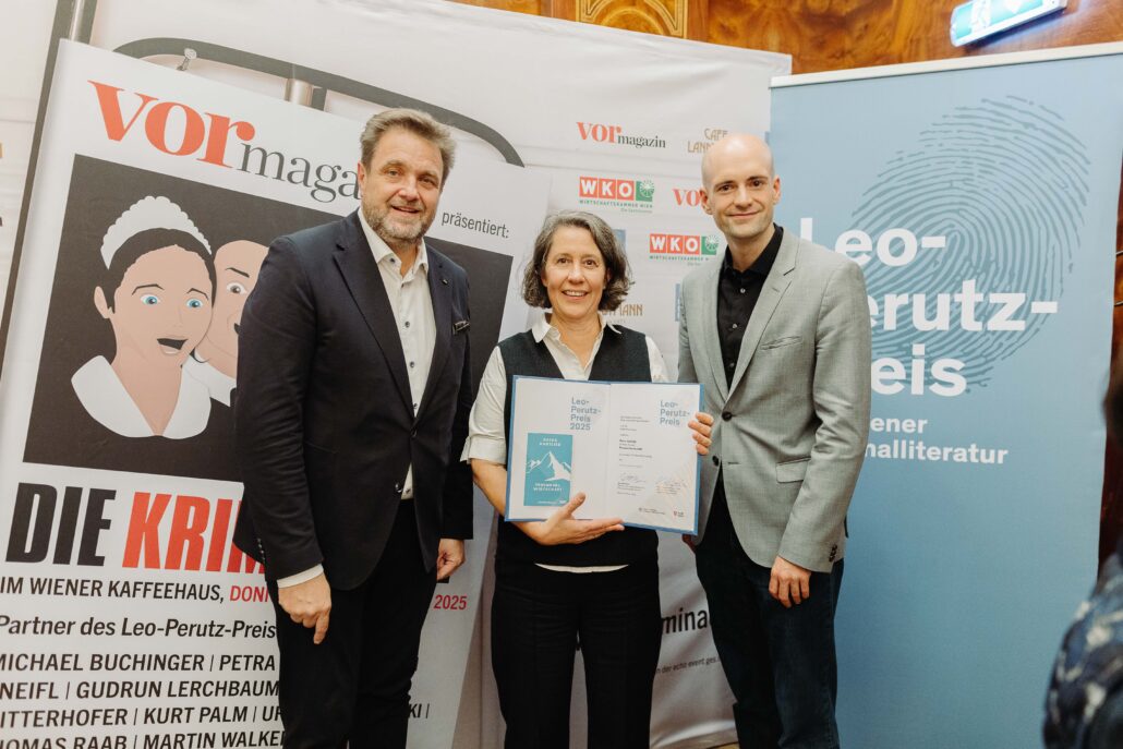 Der große Auftakt der Kriminacht 2025 fand im traditionsreichen Café Landtmannstatt, wo um 16 Uhr – in Anwesenheit von Dr. Heide Kunzelmann und Benedikt Föger – der Leo-Perutz-Preis für Wiener Kriminalliteratur verliehen wurde. Aus der Shortlist mit Petra Hartlieb, Gudrun Lerchbaum, Annemarie Mitterhofer, Thomas Raab und Ursula Poznanski ging Petra Hartlieb als Siegerin hervor. Der Vorjahresgewinner Heinrich Steinfest hielt eine berührende Laudatio auf die Autorin.