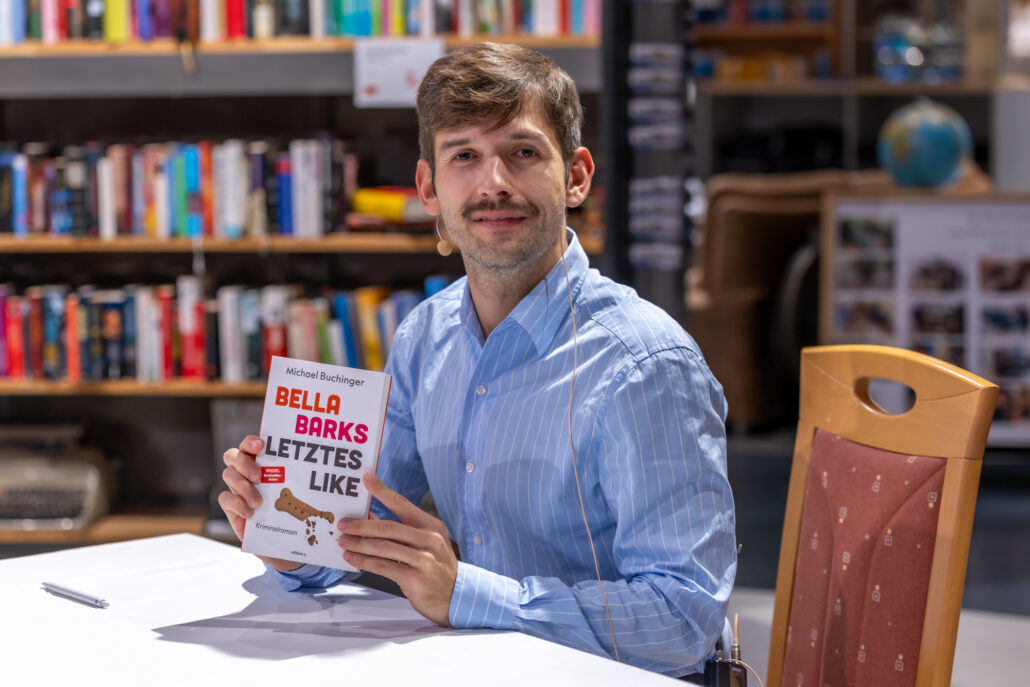 Beitragsbild: Humorvoll wurde es mit Michael Buchinger, der im 48er-Tandler aus seinem neuen Werk „Bella Barks‘ letztes Like“ las. © Bubu Dujmic