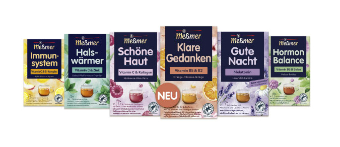 Mit dieser Neuheit umfasst das Sortiment der Meßmer Tees mit Zusätzen nun sechs Sorten: Immunsystem, Halswärmer, Gute Nacht, Hormonbalance, Schöne Haut und Klare Gedanken. Jede davon wurde mit viel Sorgfalt und Liebe zum Detail entwickelt – immer mit dem Ziel, das tägliche Wohlbefinden zu fördern und den kleinen Genussmoment in eine wohltuende Auszeit zu verwandeln.